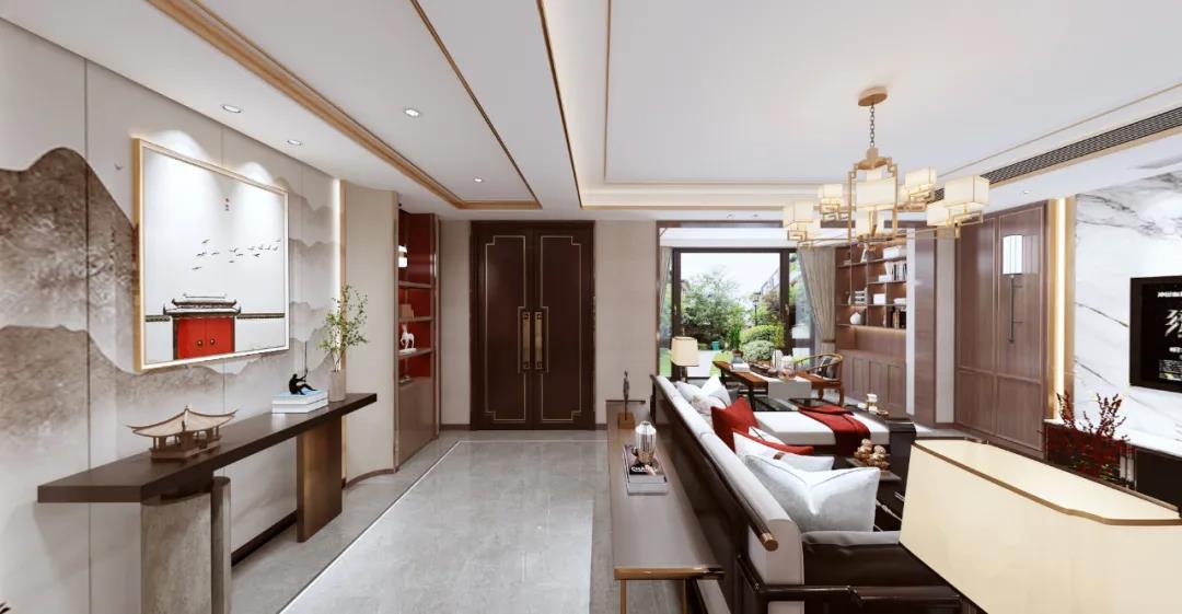 主卫采用双台盆的设计,方便主人进行梳洗打扮。浴缸、淋浴间、马桶均单独隔开,尽可能减少卫生间的积水情况,保持卫生间的清洁,方便打扫,也是为了健康。除此之外,卫生间的装潢均采用黄铜金属、大理石花纹,打造出奢华之感。