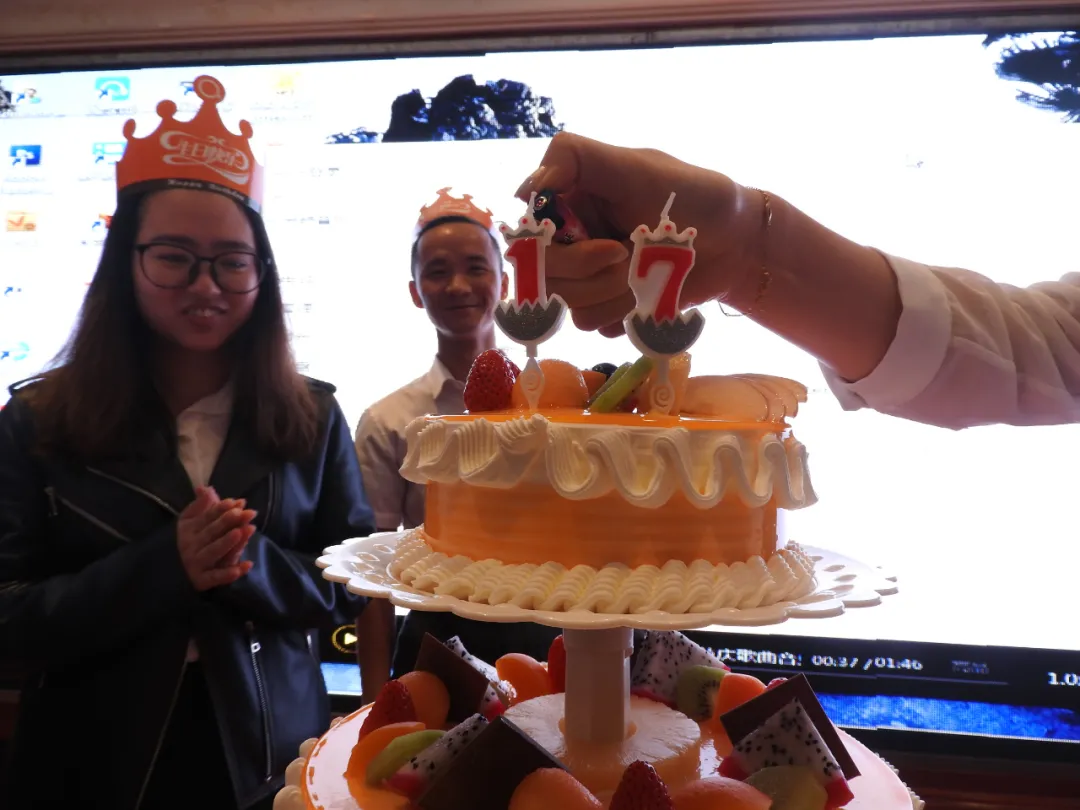 生日快乐歌响起,祝福的话语响彻会场。精美的蛋糕层层拆开,9月过生日的家人被邀请上台,与新思路装饰共庆生日。李总、蒋总和本月寿星们一起切开甜蜜柔软的蛋糕,欢乐的气氛弥漫着整个会场。