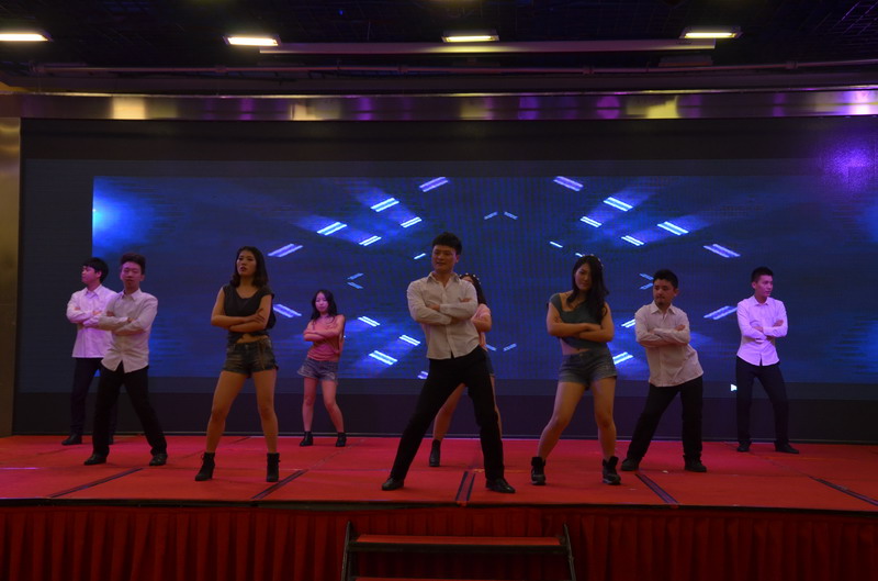 接下来的节目演出立刻让晚会现场成为欢乐的殿堂。歌曲、舞蹈、小品、合唱多种节目形式,精彩纷呈,所有节目均为公司员工自编、自导、自演,充分反映出新思路装饰生动而富有内涵的企业文化。缤彩纷呈、风格各异的十几个节目赢得观众满堂喝彩,充分展现出新思路家人多才多艺、能歌善舞的一面。热闹喜庆的《拜新年》作为开场第一个节目闪亮登场,欢快的舞蹈、喜庆的旋律、愉悦的氛围感染着每一位在场的观众,为整场晚会点燃激情。活力奔放的串烧舞蹈《小苹果》引起现场尖叫声不断;工程部家人带来的歌曲《超越梦想》以大合唱的形式唱响了新思路人超越梦想、勇攀高峰的激情和心声;性感柔美的歌伴舞《万水千山总是情》更是引得场下“粉丝”阵阵尖叫。要说全场最闪亮的舞蹈,当属才女徐艺丹带来的独舞《映山红》,优美的舞姿诉说着无尽的情思,散发着醉人的芳香,看得人是如痴如醉。而江北店家人带来的小品《招聘》延续去年的爆笑风格,幽默的台词,惟妙惟肖的模仿让现场笑声连连,掌声不断。还有南坪店家人表演的小品《新白娘子传奇》、工程部家人带来的情景剧《交房》、沙坪坝店家人带来的对唱《有你有我》、江北店家人表演的相声《回家》......家人们以业余的身份发挥出了专业演员的水平,把角色演绎得惟妙惟肖,让人叹为观止。