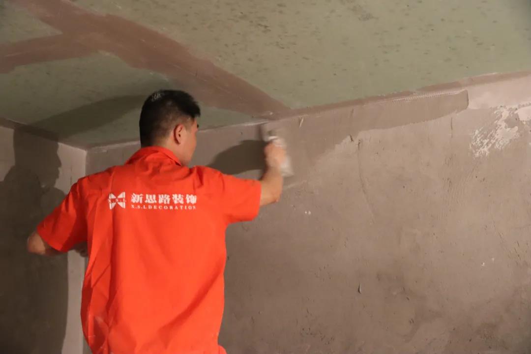 我们来到的第一处工地是水电阶段刚结束、正在进行硬装阶段的工地。客户正在工地上查看情况,设计师敖元坝刚到现场,就和我们在施工的工人以及在场的客户交流起来。