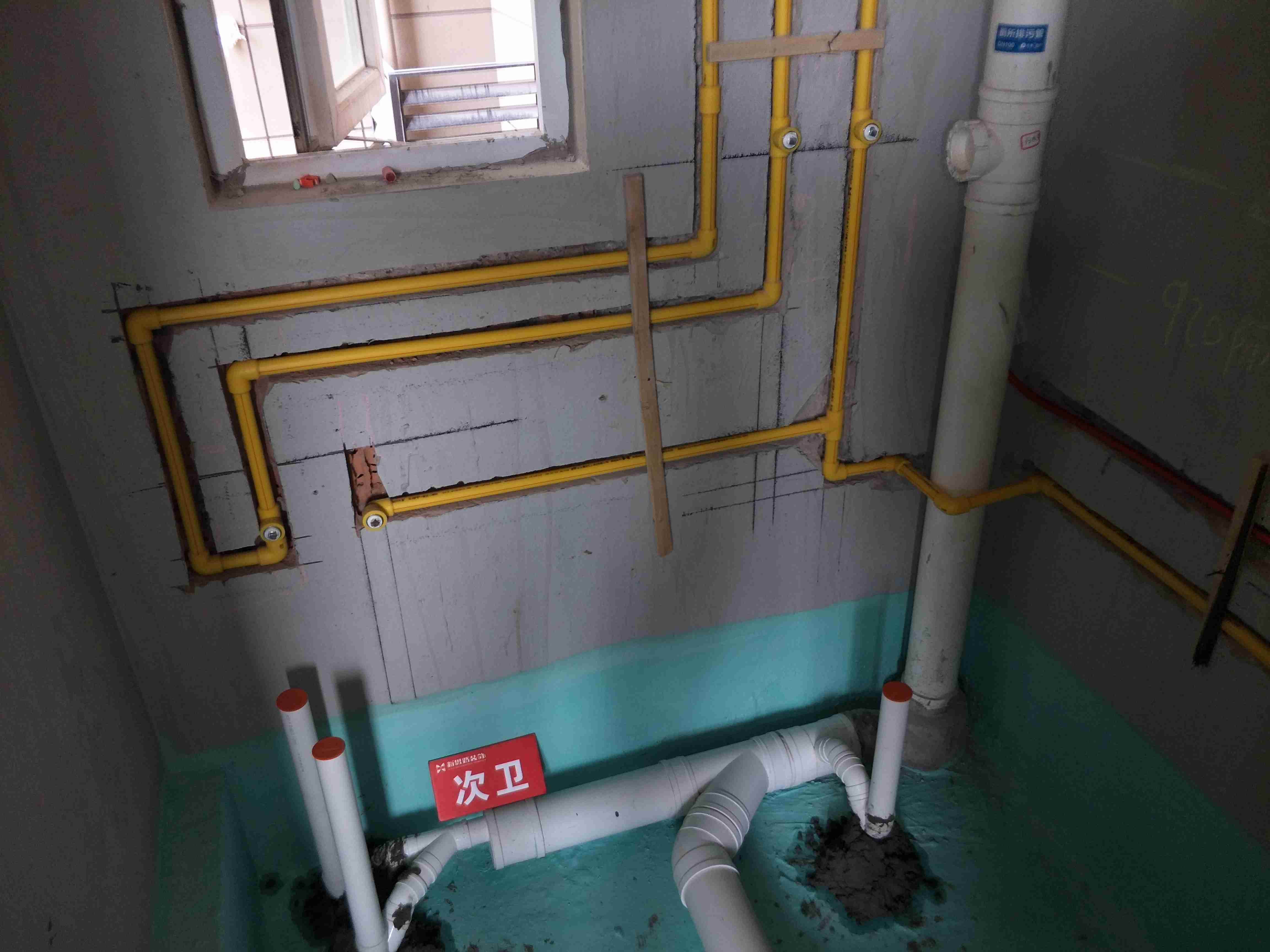 从安全角度来讲,卫生间水管电线走上面比走下面好。但很多“游击队”贪图省力,水电走地上,甚至在卫生间开地槽,凿圆孔。